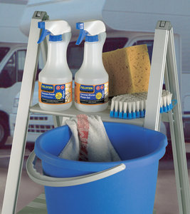 Nach dieser Tiefenreinigung ist die Außenhaut des Fahrzeuges ungeschützt. Feldten empfiehlt daher die Konservierung mit dem neuen Caravan-Finish. Es enthält hochwertige Silikonöle und Wachse, die Lack, Kunststoff oder Aluminium mehrere Wochen lang vor Wasser, Umweltschmutz und UV-Licht schützen. Die Farben werden aufgefrischt und die Karosserie erhält neuen Glanz. Caravan-Finish wird mit einem Tuch oder Schwamm aufgetragen und auspoliert.
