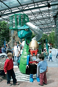 Noch bis einschließlich 30. September bildet der Playmobil-FunPark einen Schauplatz für die abenteuerliche Welt der "alten Rittersleut". Täglich um 11, 14 und 16 Uhr starten spannende Burgfestspiele, bei denen aktives Mitmachen angesagt ist. Auf dem neu angelegten Turnierplatz hinter der mächtigen Ritterburg können die jungen Besucher in kühnen Ritterturnieren, beim "schlagkräftigen" Kanonenschießen oder im spannenden Schwertkampf-Duell ihren Mut unter Beweis stellen. Perlenfädeln, Bänderflechten und Töpfern runden die spielerische Zeitreise ins Mittelalter ab.