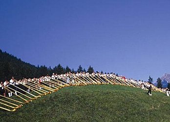 Gäste, die nicht informiert sind, werden sich über die eigenartigen, morgendlichen Klänge wundern. Frühaufsteher dagegen werden Zeitzeugen des Weckrufes, bei dem ca. 100 Alphornbläser aus aller Herren Länder ein Hörspiel mit ihren riesigen Instrumenten inszenieren. Verstreut über die vier Ortschaften des Kleinwalsertals (Riezlern, Hirschegg, Mittelberg und Baad) werden die Damen und Herren mit den kräftigen Lungen ab 6:30 Uhr das ganze Tal zum Klangkörper für traditionelle Alphornklänge umfunktionieren. Zur Einstimmung finden sich die Alphornbläser schon am Vorabend zur Alphornserenade mit Bergfeuer zusammen (19:30 Uhr, Sonna-Alp in Mittelberg). Im Bergdorf Baad beginnt am Sonntag ab 11 Uhr der Hauptteil des Alphornfestivals mit einem Feldgottesdienst. Den ganzen Tag über werden dort dann Alphornklänge aus aller Welt zu hören sein.