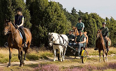 Vom Zelt in den Sattel Ob mit der Kutsche oder hoch zu Ross – in der Lüneburger Heide finden Pferdefans ideale Bedingungen. (Foto: Jürgen Borris, Naturfotograf)