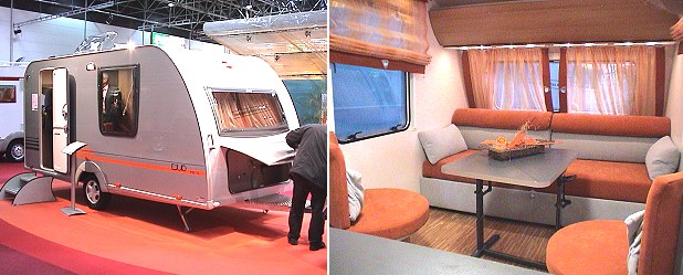 Der Bürstner Duo - ein kleiner leichter Caravan für junge Paare (Fotos:Richter)(hr) Kompakte, leichte Caravans, die auch von kleineren Pkw gezogen werden können, sind in. Auf diesem Gebiet debütiert Bürstner jetzt mit einer schlicht "Duo" genannten Wohnwagen-Baureihe. Die 4,30 bzw. 4,70 Meter langen Caravans bestechen Dank cleverer Möblierung durch viel Raumgefühl. Im Zentrum der Sitzgruppe im Bug steht bei beiden Varianten ein Schlafsofa, die größere Version hat im Heck neben der Küche auch Toilette und Waschbecken. Eine Heizung fehlt allerdings in beiden, ist jedoch als Zusatzoption erhältlich.