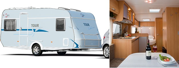 T.E.C.-Bestseller serienmäßig mit AL-KO Trailer Control (Werksfotos)(hr) Zur Messe CMT in Stuttgart bringt T.E.C. ein Wohnwagen-Sondermodell heraus, den Tour 450 TDF. Der Grundriss ist ein Bestseller bei T.E.C.: Rundsitzgruppe im Heck, Küchenzeile in der Mitte gegenüber der Eingangstür, französisches Längsbett und Badbereich im Bug - eine insgesamt gefällige Raumaufteilung auf 5,32 Metern Aufbaulänge. Das Besondere dabei: Zum ersten Mal wird in Deutschland ein Modell serienmäßig mit ATC, dem Anti-Schleuder-System von AL-KO, gebaut,