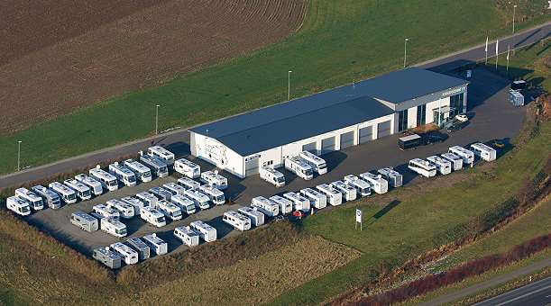 Vorweihnachtlicher Gedankenaustausch bei der Firma Goldschmitt (Foto: Goldschmitt-techmobil AG )(red) Fast auf den Tag genau sieben Jahre nach seiner Gründung als "flairfreunde.de" traf sich der mittlerweile unter ArtoFlairfreunde bekannte Reisemobilclub zum vorweihnachtlichen Gedankenaustausch bei der Firma Goldschmitt in deren Technik-Center in Walldürn. 55 Reisemobile der Nobelmarke Niesmann + Bischoff scharten sich um den attraktiven Glasbau, die meisten der Reisemobilfahrer waren zu zweit in den Odenwald gereist.