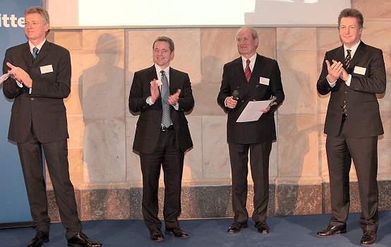 Axia-Award 2009 in der Kategorie Kundenbeziehungsmanagement V.l.: Dr. Hannes Zapf, Jurymitglied, Dr. Thomas Clark, Jury-Mitglied, Klaus Förtsch, Geschäftsführung Fendt-Caravan und Klaus Löffler Jurymitglied und Initiator des Axia Awards 2009. (Foto: Fendt-Caravan)(red) Fendt-Caravan hat den diesjährigen "Axia-Award 2009 in Bayern" in der Kategorie "Kundenbeziehungsmanagement" erhalten - einen Preis, der herausragende mittelständische Unternehmen für besonderen Leistungen in den Bereichen Internationalisierung, Innovationsmanagement, Kundenbeziehungsmanagement und Personalmanagement in schwierigen Zeiten auszeichnet.
