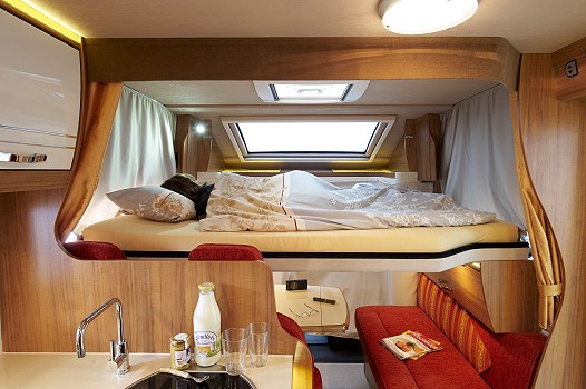 Komfortplus ohne Höhenzuwachs (Foto: Eura Mobil)(red) An den ersten Teilintegrierten der Marke mit Hubbett hat Eura Mobil besondere Anforderungen gestellt: Trotz winterfestem Doppelboden legt die Hubbettvariante des Terrestra T 710 HB in der Höhe nicht zu. Mit einer Außenhöhe von 2,79m unterbietet der Terrestra selbst Wettbewerber ohne Doppelboden in der Höhe.