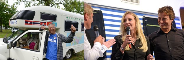 17.000 Kilometer bis zur Messe Links: Zhang Zhiwu vor seinem Pick-up Wohnmobil. Rechts: Jette Joop mit ihrem Mann Christian Elsen. (Fotos: Messe Düsseldorf)(red) Zhang Zhiwu ist wohl mit Abstand der Besucher des diesjährigen CARAVAN SALON, der die längste Anreise zu bewältigen hatte. Mit seinem umgebauten Pick-up Wohnmobil der Marke Great Wall legte der 64-Jährige 17.000 Kilometer von Peking nach Düsseldorf zurück, um sich hier vor Ort über die Neuheiten der Branche zu informieren. „Mir gefällt es in Düsseldorf wunderbar. Ganz besonders fasziniert bin ich von der Vielfalt des CARAVAN SALON, der tollen Caravan-Kultur und von der Lebendigkeit der Messe“, schwärmt Zhang Zhiwu. Insgesamt drei Tage bleibt der chinesische Caravan-Fan in Düsseldorf, ehe er sich wieder auf die Rückreise ins Reich der Mitte begibt. Sein eindrucksvollstes Erlebnis auf der langen Anfahrt zum CARAVAN SALON erlebte der aus der Hafenstadt Dalian stammende Rechtsanwalt auf dem Autoring in Moskau. „Ich war in einen schweren Unfall verwickelt und musste ich meine Reise wegen der langwierigen Reparatur des Fahrzeugs für 50 Tage unterbrechen. Zum Glück ist aber nichts Schlimmes passiert. Nun bin ich gespannt, welche Abenteuer mich auf meiner Rückfahrt erwarten.“
