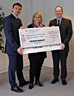 Spendenaktion der Knaus Tabbert Group war erfolgreich Thomas Dickenberger (l.) und Reinhard Hoßfeld mit Ute Kister bei der Schecküberreichung (Foto:KTG)(hr) Im Rahmen der Weihnachtsaktion "Spende statt Geschenke" zugunsten der SOS-Kinderdörfer hatte die Knaus Tabbert Group im Dezember 2001 auf die üblichen Geschenke an ihre Handelspartner verzichtet und alle Geschäfts- und Handelspartner zu weiteren Spenden aufgerufen. Viele Unternehmen folgten dem guten Beispiel.