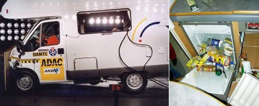 Reisemobile gehören zu den sichersten Verkehrsmitteln - noch Verbesserungsbedarf beim Innenausbau Der ADAC führte einen Reisemobil-Crashtest durch, rechts der zerstörte Küchenblock. (Fotos:ADAC)(hr) Laut einer aktuellen Untersuchung der Bundesanstalt für Straßenwesen (BASt) gehören Reisemobile zu den sichersten Verkehrsmitteln auf Deutschlands Straßen. Nach Auswertung aller Unfalldaten des Jahres 1999 kommt die BASt zu dem Ergebnis, dass an lediglich 0,3 Prozent aller Unfälle mit Personenschäden in Deutschland Reisemobile beteiligt waren.