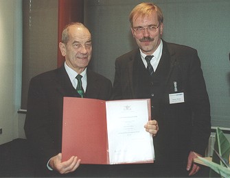 Erwin Hymer plant Caravan- und Reisemobil-Museum (Foto:Hymer)(hr) Erwin Hymer, Aufsichtsratsvorsitzender der Hymer AG in Bad Waldsee, will ein Museum für Caravan- und Reisemobil-Oldtimer aufbauen. Zu diesem Zweck hat er eine Stiftung ins Leben gerufen. Vorgestern erhielt er aus den Händen des Tübinger Regierungspräsidenten Hubert Wicker (im Bild rechts) die offizielle Stiftungsurkunde für die "Erwin-Hymer-Stiftung".